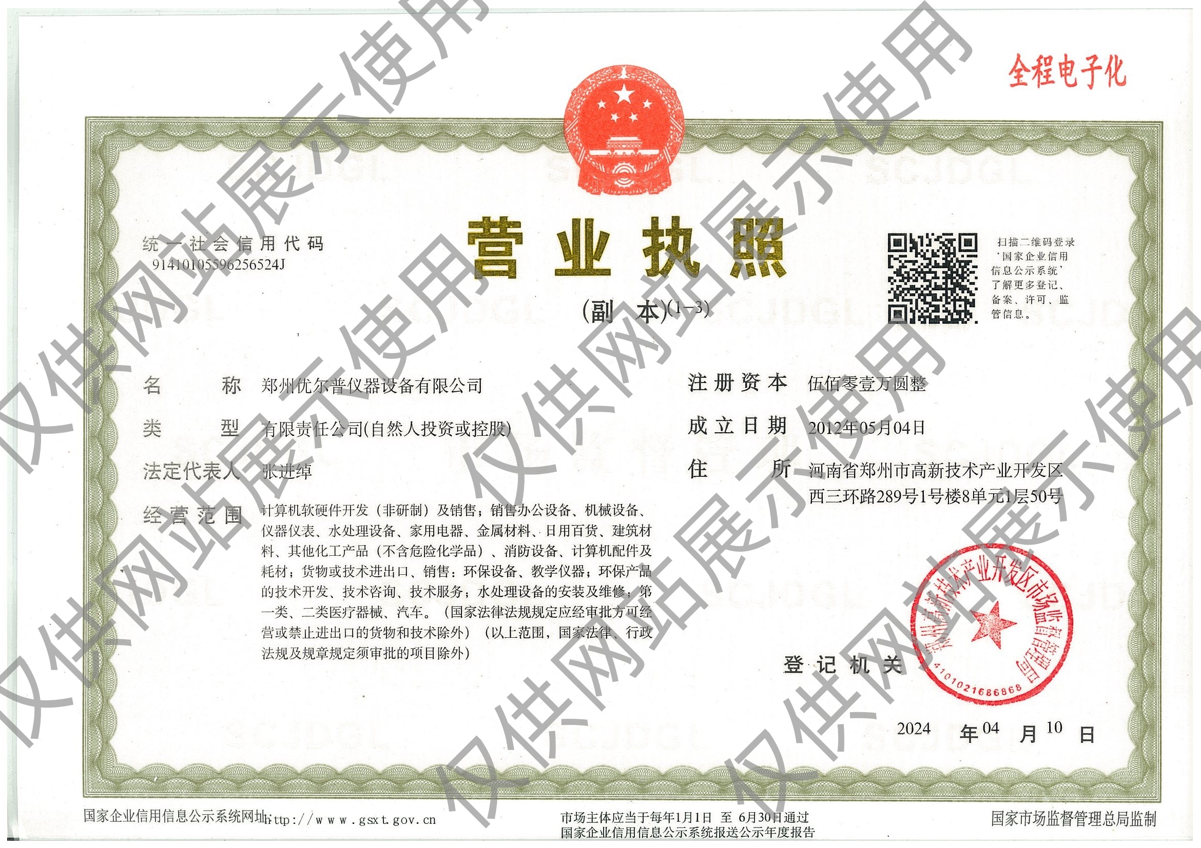 鄭州優(yōu)爾普儀器設(shè)備有限公司注冊(cè)資金501萬(wàn)元,所售純水機(jī)等儀器產(chǎn)品通過(guò)ISO9001質(zhì)量體系認(rèn)證、歐盟RoHS安全認(rèn)證等多項(xiàng)認(rèn)證,所屬集團(tuán)公司獲得3A級(jí)企業(yè)認(rèn)證